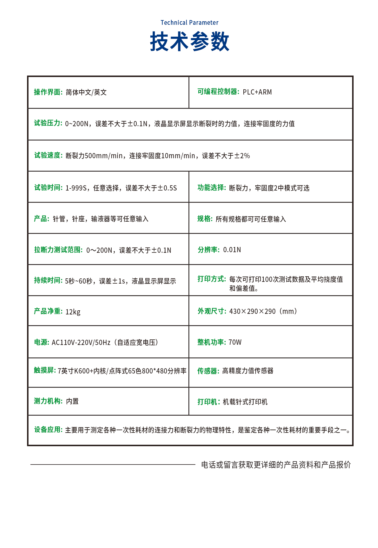 LF0325-C導(dǎo)尿管牢固度分離力測試儀設(shè)備是國家檢驗生產(chǎn)廠家產(chǎn)品性能的高效檢測設(shè)備。由可編程控制器,觸摸屏、力值傳感器、傳動裝置和機載打印機組成。另增設(shè)生產(chǎn)單位,生產(chǎn)批次機打輸入,使測試結(jié)果更加規(guī)范化標(biāo)準化。測試操控范圍包括:產(chǎn)品規(guī)格、設(shè)定載荷、保持時間、打印設(shè)定、測試、上行、下行、時間、標(biāo)定等功能設(shè)定。搭配機載打印測試可實時顯示測試載荷,牢固度數(shù)據(jù)。