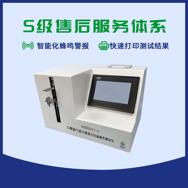 KBB0977-C口咽通氣道口頰部分抗扁癟性測(cè)試儀主要用于檢驗(yàn)麻醉和呼吸設(shè)備口咽通氣道抗扁癟性的智能檢測(cè)設(shè)備,是鑒定麻醉和呼吸設(shè)備口咽通氣道的有效手段之一。