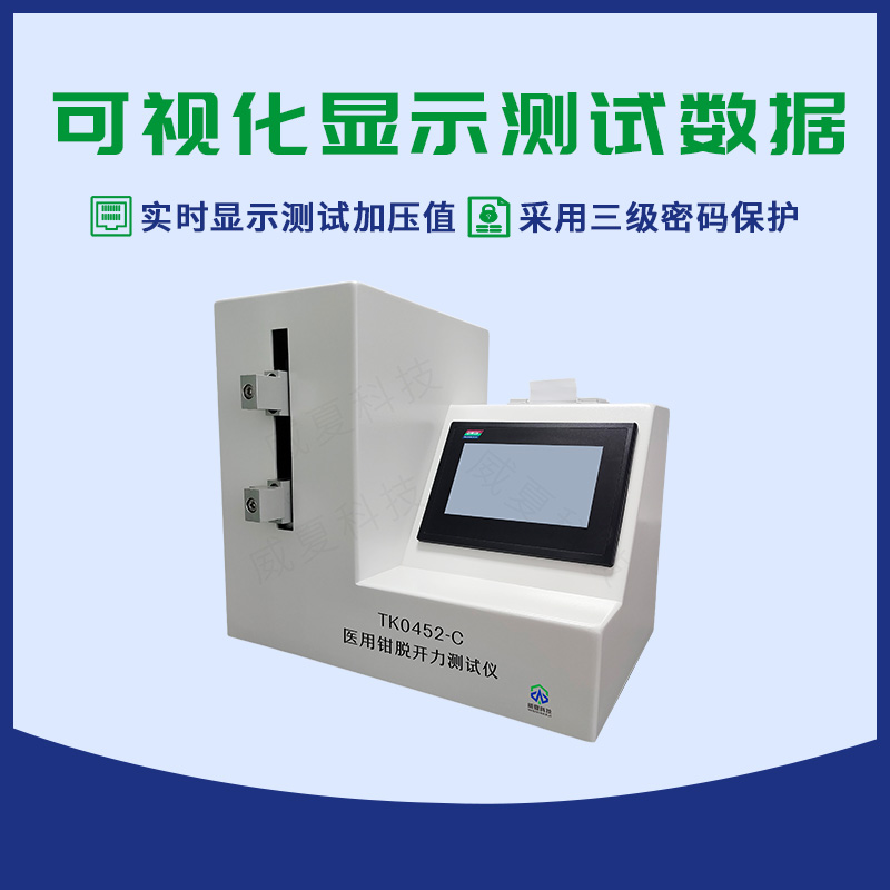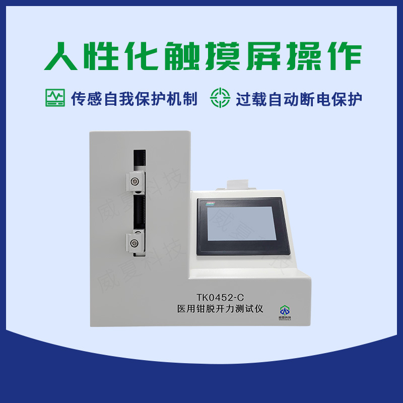 TK0452-C醫(yī)用鉗脫開力測試儀由可編程控制器,觸摸屏、力值傳感器、傳動裝置和機(jī)載打印機(jī)組成。中英文雙語操作界面,具備人機(jī)對話設(shè)定各項(xiàng)參數(shù)自動運(yùn)行測試模式。