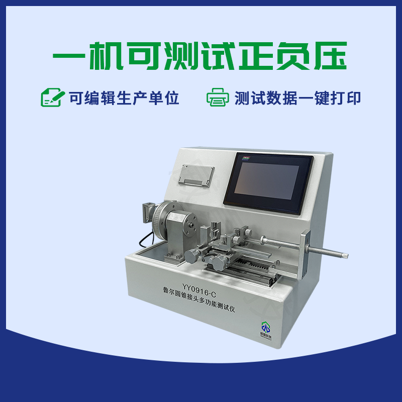 YY0916-C魯爾圓錐接頭綜合測(cè)試儀主要用于測(cè)定魯爾接頭漏液、漏氣、分離力、旋開扭矩、易裝配性、抗滑絲性、抗過載性、應(yīng)力開裂、壓力衰減泄漏、正壓液體泄漏、負(fù)壓空氣泄漏等各項(xiàng)性能。