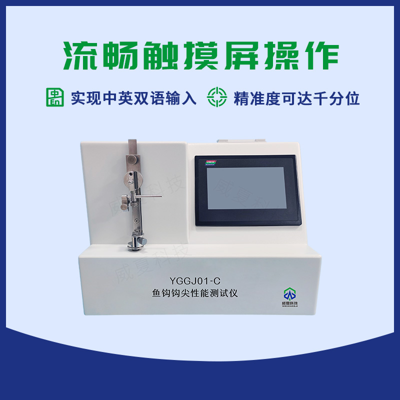 YGGJ01-C魚鉤鉤尖性能測試儀由可編程控制器,觸摸屏,力值傳感器,傳動裝置,機載打印機等組成,提供中英文菜單顯示,具備人機對話設(shè)定各項參數(shù)自動運行測試模式。