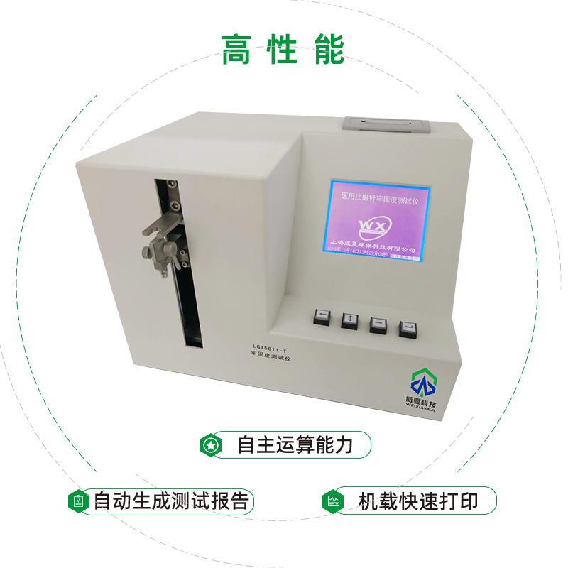 威夏科技 LG15811-T 注射針牢固度測試儀是國家檢驗生產(chǎn)廠家產(chǎn)品性能的高效檢測設(shè)備。LG15811-T牢固度測試儀主要用于測定醫(yī)用耗材的的鏈接處的鏈接牢固度和斷裂力的物理特性,是鑒定各種鏈接件牢固性能的重要手段之一。用于測試管斷裂力,導管和導管接頭的連接牢固度,針的針座與針管,襯芯與襯芯座的連接牢固度等等??梢赃x擇拉斷測試和保持設(shè)定力及設(shè)定時間的測試。