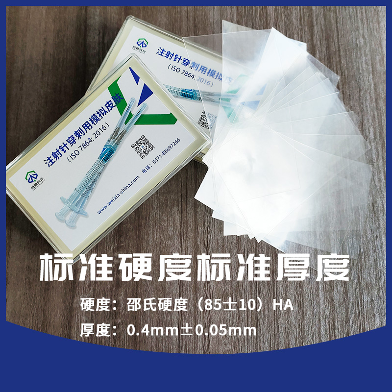 模擬皮膚的技術(shù)參數(shù):材料:聚氨酯材料;硬度:具有邵氏硬度(85士10)HA;厚度:0.4 mm ± 0.05mm。