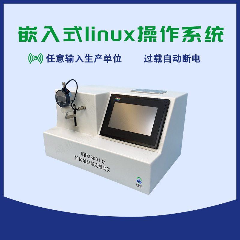 威夏科技 ZBC33001-JQD1 牙鉆頸部強(qiáng)度試驗(yàn)儀是國(guó)家檢驗(yàn)生產(chǎn)廠家產(chǎn)品性能的高效檢測(cè)設(shè)備。設(shè)備應(yīng)用:ZBC33001-JQD1 牙鉆頸部強(qiáng)度試驗(yàn)儀主要用于測(cè)定醫(yī)用牙鉆的強(qiáng)度的物理特性,是鑒定醫(yī)用牙鉆的重要手段之一。測(cè)試操控范圍包括:測(cè)試項(xiàng)目、牙鉆形式、牙鉆頭部形狀、牙鉆直徑、打印設(shè)定、測(cè)試、上行、下行、時(shí)間、標(biāo)定,檢定等功能設(shè)定。