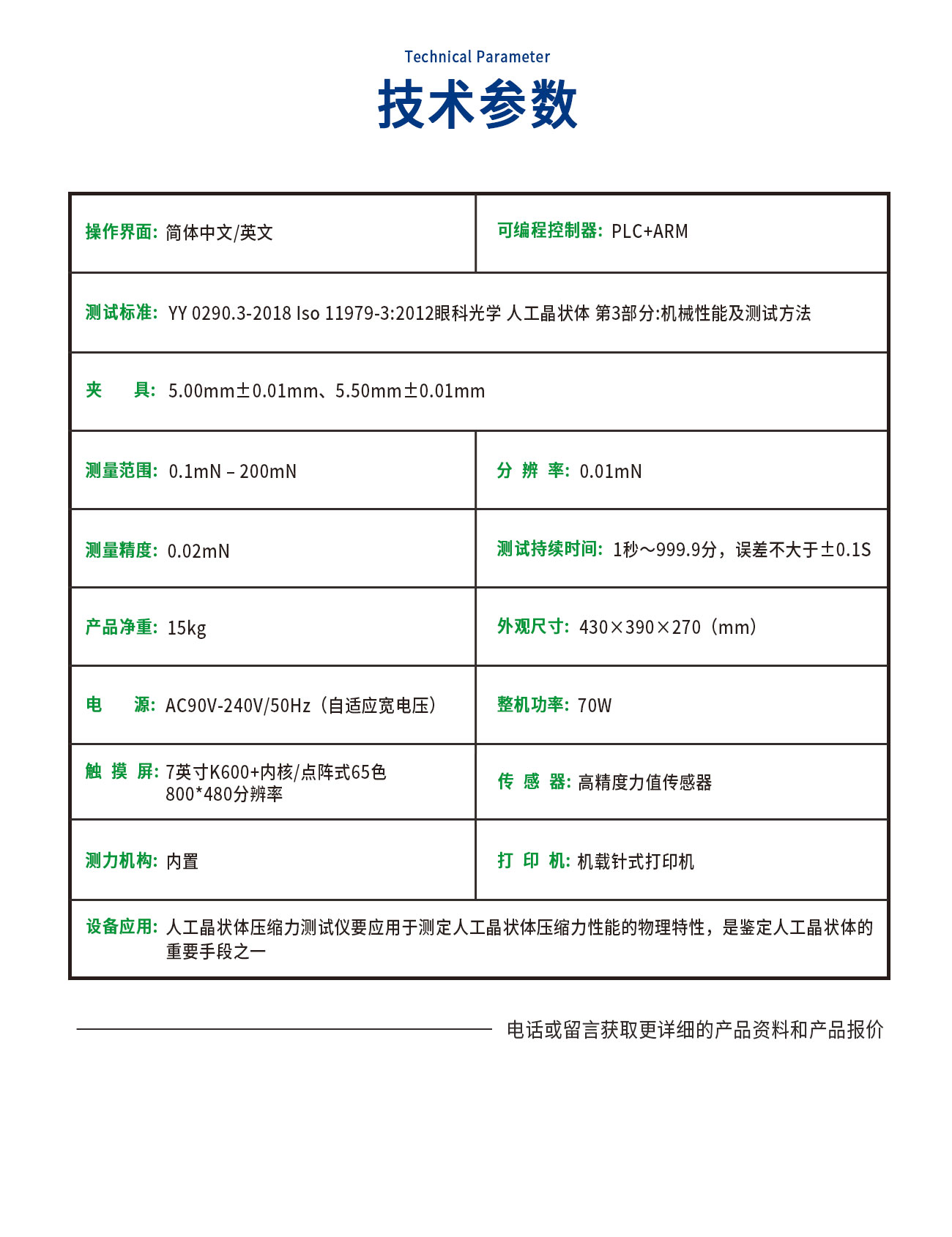 YSL0290-C人工晶狀體壓縮力測試儀執(zhí)行標(biāo)準(zhǔn): YY 0290.3-2018 眼科光學(xué) 人工晶狀體 第3部分:機(jī)械性能及測試方法(ISO 11979-3:2012)