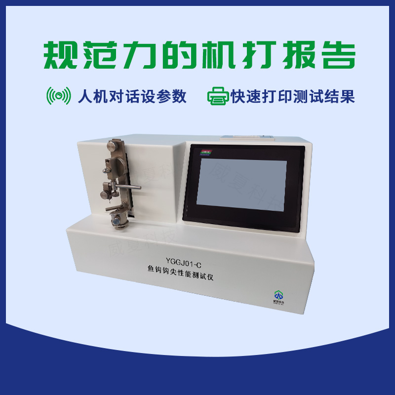 YGGJ01-C魚鉤鉤尖性能測試儀由可編程控制器,觸摸屏,力值傳感器,傳動裝置,機載打印機等組成,提供中英文菜單顯示,具備人機對話設(shè)定各項參數(shù)自動運行測試模式。