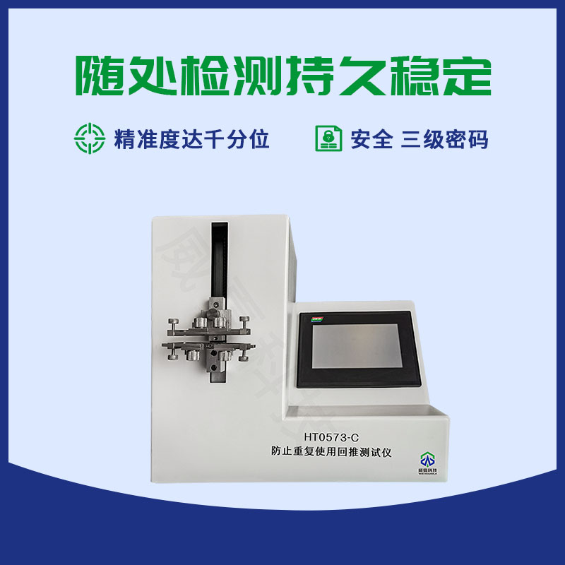威夏科技 HT0573-C 防止重復(fù)使用回推測試儀是國家檢驗生產(chǎn)廠家產(chǎn)品性能的高效檢測設(shè)備。HT0573-C 防止重復(fù)使用回推測試儀主要用于測定一次性使用無菌注射器物理特性,是鑒定防止重復(fù)使用性能的重要手段之一。測試操控范圍包括:公稱容量、拉力數(shù)據(jù)、壓力數(shù)據(jù)、打印設(shè)定、測試、上行、下行、時間、標(biāo)定,檢定等功能設(shè)定。