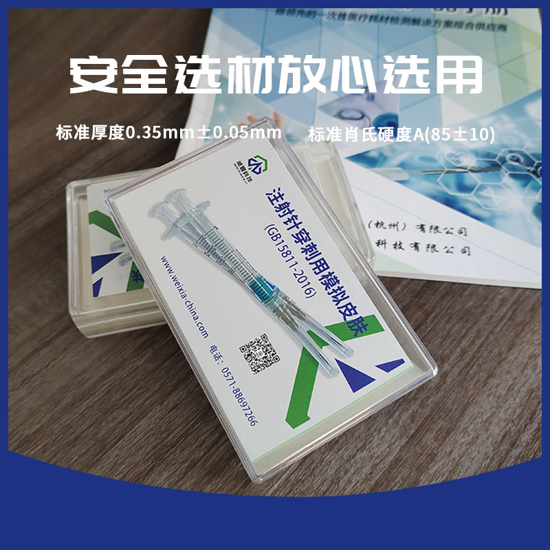 威夏科技注射針穿刺力模擬皮膚用于注射針針尖刺穿力測試儀試驗(yàn),也用于留置針、輸液針或活檢針的穿刺檢測,供應(yīng)各大檢測機(jī)構(gòu),是全國各大醫(yī)療器材監(jiān)督局實(shí)際使用產(chǎn)品,本產(chǎn)品符合GB15811標(biāo)準(zhǔn)規(guī)定。